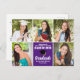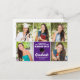 Este moderno collage de fotos de graduados de grado morado incluye tus 5 fotografías de estudiantes favoritas. Esta postal de invitación para graduados presenta una tipografía blanca elegante de su nombre de instituto o universidad para la clase de 2025. Personalizar con su año de graduación por encima de la tapa de grad negro para grandes postales.