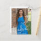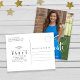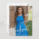 This design features a graduate graduation grad photo, an elegant minimalist modern picture, with a trendy stylish calligraphy script font, with school colors basic black style, for high school or college seniors, with classic elegant typography design, a fancy creative calligraphy script, a graduation grad party invitation card, an elegant graduation announcement card, with simplistic elegance modern style