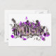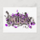 Música de estilo graffiti con fondo morado y gris salpicado.