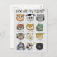 Tarjeta postal con gráfico de sentimientos con tema de gato lindo y el divertido juego de palabras "¿Cómo te sientes?" Mantener un registro de tus emociones puede ser una tarea difícil, pero esta tarjeta colorida y linda te recordará que debes mirar dentro y ponerte en contacto con el espacio en el que estás. Recuerda, los sentimientos no son buenos ni malos, simplemente son. Siente tus sentimientos y elige cómo responder a ellos. Esta tarjeta postal sería el regalo perfecto para cualquier persona interesada en la autoconciencia, la salud mental y el bienestar en general.