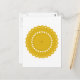 Diseño impreso inspirado en encajes. Un elegante diseño gráfico circular amarillo mostaza, con zonas estampadas.