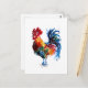 una pintura acuarela tradicional de un gallo grande y colorido o un pollo macho en una postal.