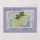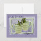 Ahorre en franqueo y sobre/papel cuando envíe una postal. El diseño de la cubierta incluye fotografías alteradas digitalmente de dos tazas de té verdes en forma de espiral con ramitas de menta que sobresalen de la parte superior. Personalice el texto de la plantilla, elimine el texto o haga clic en personalizar para seleccionar un estilo de letra, tamaño y color que prefiera.