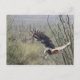 Un gran búho de cuernos vuela con un paisaje del desierto.