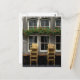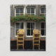 Exterior de un Gran Café en Maastricht, Holanda, temprano en la mañana, con las sillas apiladas contra la pared.