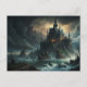 Entrar en un mundo de obscuro encanto con este gran ilustracion gótico del castillo, que representa un majestuoso castillo encaramado sobre acantilados escarpados, rodeado de turbulentas olas y ominosas nubes de tormenta.