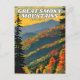 Gran ilustracion del Parque Nacional de las Montañas Ahumadas, postal decorativa retro.