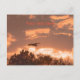 Postal Gran silueta azul de garza en vuelo al atardecer