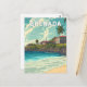 Diseño de viajes vectoriales retro de Granada. Granada, conocida como la Isla de las Especias del Caribe, cautiva a los visitantes con sus playas de arena blanca, sus exuberantes selvas tropicales y su rico patrimonio cultural.