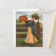 Postal Granja de Calabazas Jack O' Lantern sonriente muje