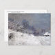 Postal de arte fino con el cuadro impresionista, The Road in Front of Saint-Simeon Farm in Winter (1867), de Claude Monet (1840-1926). Un paisaje de una carretera cubierta de nieve cerca de una casa de campo.