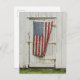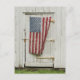 Esta asombrosa foto de Getty Images muestra una bandera estadounidense colgando de una desgastada puerta de granero blanco.