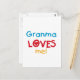 Granma me ama camisetas, pantalones de vestir, tarjetas, bolsas y otros artículos con un diseño de texto azul, rojo y amarillo.