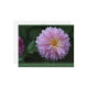 Grattiskort med stor och vacker blomma i svaga rosa färgtoner, förmodligen en dahlia. Bakgrunden är djupgrön och nästan helt utjämnad. Kortet har en högtidlig känsla och passar bra t.ex vid konfirmation eller jämna födelsedagar, då kanske framför allt för äldre personer. Texten på framsidan 'Gratulerar till konfirmationen' går lätt att byta ut till 'Gratulerar på födelsedagen' eller något liknande. Stilen är tunn och diskret, tar inte över motivet.