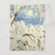 Great Tit by Norwegian artist Theodor Severin Kittelsen. Watercolor painting of a cute yellow parus major bird on a snowy tree branch in winter time while the sun is breaking through on a clear blue sky.