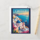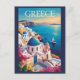 Postal Grecia Santorini Ilustracion Viaje Arte Vintage
