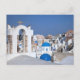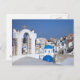 Postal Grecia, Santorini. Torre de campanas y cúpulas azu
