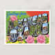 Discover the scenic beauty of the Arkansas Ozarks with this vibrant vintage-style postcard! This classic large-letter design features the region's name in bold, eye-catching script set against a lively green, red, and yellow background, framed by charming pink roses. Inside the block letters, you'll find colorful vignettes showcasing the natural splendor and historic charm of the Ozarks, including cascading waterfalls, lush forests, calm rivers, and historic architecture/homes.