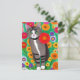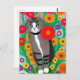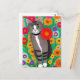 Postal Gris y gatos blancos singulares y flor roja