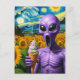 Un extraterrestre morado gritando cono de helado con helado morado y verde AI generó arte