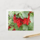 Postal Grosellas rojas en la planta. Hojas verdes.