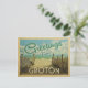 El diseño de esta postal antigua de Greetings From Groton incluye una playa de arena con un hermoso agua turquesa del océano y sobre el mar, un cielo azul con nubes blancas onduladas. En estilo de viajes vintage.