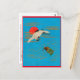 Postal Grúa de Sarus volando sobre la tortuga en el mar