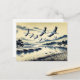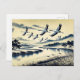 Postal Grullas volando sobre un paisaje fluvial de tinta