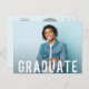 Agregue su foto favorita a estas invitaciones con una superposición de texto blanco de estilo grunge moderno GRADUADO y envíelas como tarjetas postales para su fiesta de graduación o ceremonia de graduación. Agregue la misma foto o una diferente en el lado de la dirección posterior con su información. Más diseños en nuestra tienda.