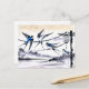 Postal Grupo de golondrinas reunidas en una línea de alim