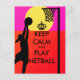 Silueta de tirador de gol, mantenga la calma y juegue al netball en una colorida postal personalizado. Crea tus propias tarjetas personalizadas.