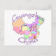 Guangzhou de la provincia de Guangdong en un colorido mapa de China incluye los símbolos chinos para 'Guangzhou' y su ubicación está marcada en el mapa con un corazón y una bandera. ¡Un hermoso y único regalo de adopción de China! ¡personalizar con un nombre o foto también! Diseñado por Hendrika de RedThreadMaps.com