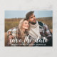 Guardar La Fecha Moderna De Compromiso Pareja Foto Postcard Guión Blanco
