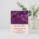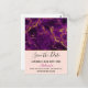 Tarjeta postal para guardar la fecha con un hermoso patrón abstracto con un diseño de mármol. Colores púrpuras ricos que se mezclan con cintas de color dorado falso que se mezclan y se entrelazan en todo el diseño. Una capa de color melocotón debajo del patrón con una tira elegante de lámina dorada falsa entre ellos.