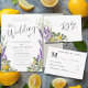 Anuncie su día especial en un estilo fresco y romántico con esta tarjeta Lemons y Lavender Save the Date. Con originales ilustraciones acuáticos de limones vibrantes, delicadas estacas de lavanda y frondosos follajes verdes, este diseño captura a la perfección el encanto rústico con un toque mediterráneo. Una hermosa manera de dar a los huéspedes un primer vistazo de su boda, es completamente personalizable con sus nombres, fecha y ubicación.