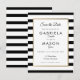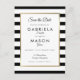Diseñado para coordinar con nuestra colección clásica de bodas de raya. Con un fondo clásico de rayas en blanco y negro, esta elegante tarjeta para guardar la fecha presenta un borde elegante de pan de oro falso que enmarca tus detalles para guardar la fecha en tipografía chic. Diseñado por Thisisnotme