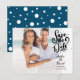 Esta tarjeta moderna de guardar la fecha con script presenta tu foto y un decorativo guardar la fecha encima de tus nombres, fecha y lugar. La parte trasera presenta puntos dispersos. Puedes personalizar el color del fondo para que se adapte. Diseñado por Thisisnotme©