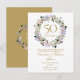 Con una delicada guirnalda floral de lavanda en acuarela, esta elegante invitación para guardar la fecha del 50 aniversario de bodas botánico se puede personalizar con la información de su guardar la fecha. El reverso presenta una guirnalda floral a juego que enmarca las fechas del aniversario en texto blanco elegante sobre fondo dorado. Diseñado por Thisisnotme©
