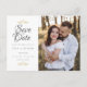 Esta elegante tarjeta de fecha de guardado incluye su foto y hermosas palomas de oro y corazones sobre un guión, guarden la fecha y sus nombres, fecha y lugar. El reverso presenta un patrón de palomas y corazones. Puede personalizar el color de fondo en el frente y revertir para que se ajuste. Diseñado por Thisisnotme©