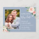 Guardar nuestra nueva fecha Duste Azul Foto Floral Rosa Rubor | Cambiar la postal de fecha. (1) Para una mayor personalización, haga clic en el enlace "personalizar adicional" y utilice nuestra herramienta de diseño para modificar esta plantilla. (2) Si necesita ayuda o elementos coincidentes, póngase en contacto conmigo.