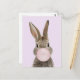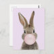 Goma rosa de burbuja de conejo con fondo rosa pastel.