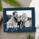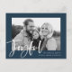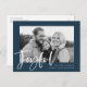 Desee a los amigos y a la familia unas vacaciones felices con nuestras tarjetas postales de fotos con estilo Joyful Script. La moderna postal navideña incluye la palabra Joyful en un guión blanco con letras a mano sobre el que está tu foto favorita enmarcada en la marina. Personalice la tarjeta postal agregando sus nombres, dirección de retorno y un saludo de personalizado.