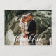 Personaliza esta tarjeta boho chic con tu propia foto en esta postal de boda "Agradecido". Di gracias a tus invitados especiales y personaliza el mensaje con tus propias palabras. Incluye los nombres de la novia y el novio, la dirección y la fecha de la boda. Con una elegante letra script de cola larga. Un uso hermoso de la tipografía y una excelente manera de compartir tu foto favorita de tu día de boda. ¡Felicidades!