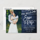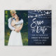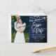 Guión De Cepillo Moderno, Madera Azul Rústica, Luces De Cuerdas Guardar La Postal De La Pareja De Compromiso De Fecha