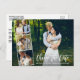 Guión De Pincel Moderno Cambiar La Postcarta De Collage de fotos Del Boda De Fecha Pospuesto Pareja De 4