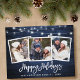 Guión de broche de madera azul rústico 3 Familia de fotos Postales de vacaciones felices con luces de cadena