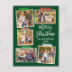 Guión de pincel moderno Feliz Navidad 5 Collage de fotos con tarjeta de postales de ferias de Cinta. Fondo verde forestal.