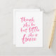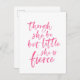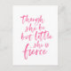 Elegante guión de broche rosa de la cita "aunque sea pequeña, es feroz" de A MidSummer Night's Dream de William Shakespeare con un fondo blanco. *Tenga en cuenta que la marca de agua Zazzle que aparece en la vista previa del zoom NO aparecerá en el producto impreso final. © Rosewood y Citrus
