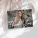 Este diseño presenta una foto personalizada del graduado y texto con letra de escritura en blanco. No dude en cambiar la imagen y el mensaje de agradecimiento en la parte posterior.