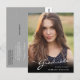 Una postal única de invitación de graduación personalizado, con elementos de diseño de texto moderno fusionados con un guión elegante de caligrafía. La foto de los graduados resalta la parte delantera de la tarjeta mientras que la parte posterior ofrece espacios de texto personalizados para información sobre la graduación y el viaje futuro. Los fondos son un degradado oscuro de moda en la parte delantera y gris plateado en la parte posterior o personalizar fácilmente la parte posterior de la tarjeta a un color de su elección. Para ver más artículos como este, visita mi tienda aquí en "www.Zazzle.com/LakeViewCardCo". ¡Gracias
